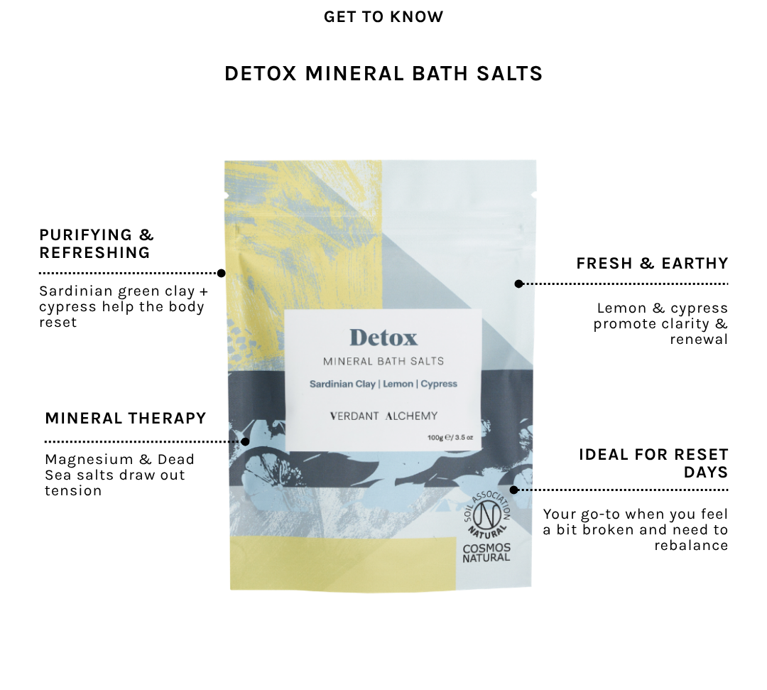 The Detox Bath Salt uses a combination of Lemon and Cypress to create an uplifting blend that fights burnout. We’ve also added in Sardinian clay to help draw out toxins from your body. It gave Vivien her best night sleep EVER.
